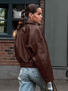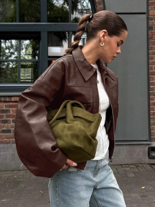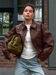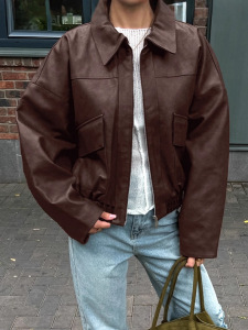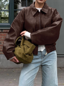 欧美复古秋冬老钱风棕色皮衣女2025跨境通勤皮夹克外套设计感女装