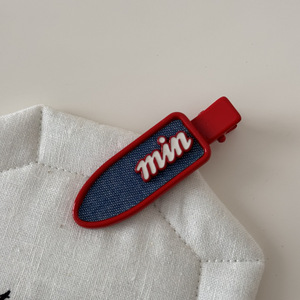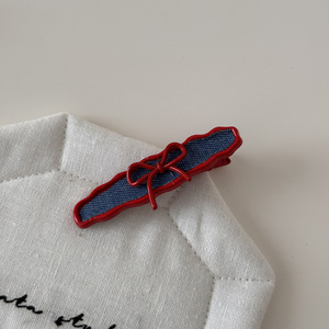 红蓝牛仔发夹字母蝴蝶结气质无痕发夹侧边夹前额碎发夹少女刘海