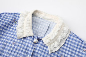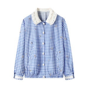 现货2025年秋新款蓝白格钉珠刺绣上衣外套LF25X11SC235