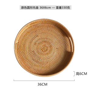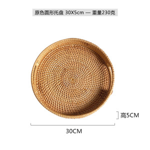 藤圆形(原色)挖孔把手托盘30和36cm2件套