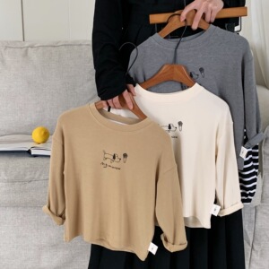 邦诚男童t恤2025秋季新款韩版儿童纯色套头上衣小童弹力打底衫潮