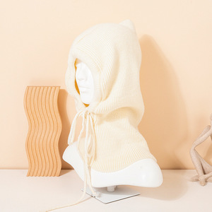 荣美秋冬季毛绒保暖毛线帽护耳堆堆帽显脸小针织冷帽女大头围帽子