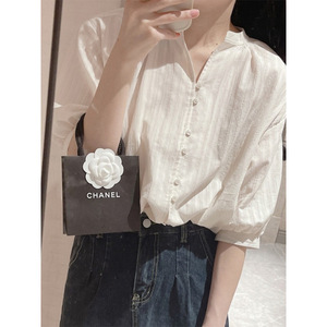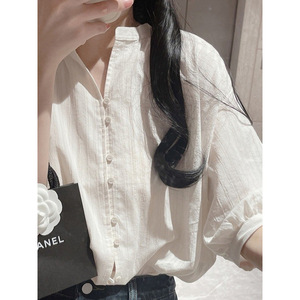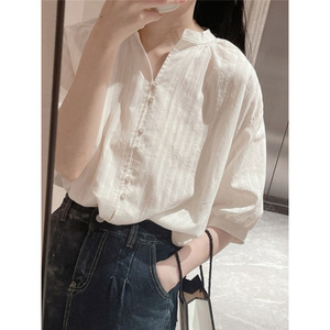 法式白色棉麻衬衫女夏设计感小众气质休闲亚麻衬衣别致五分袖上衣