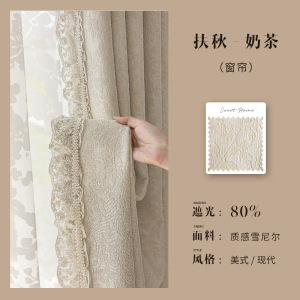 2025新款轻法式奶油风雪尼尔高遮光窗帘布卧室客厅绍兴柯桥定制