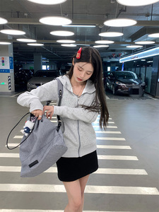 圈圈cooky 桃桃心事 运动粉色修身外套2025春秋连帽拉链卫衣上衣