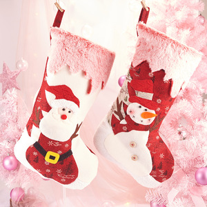 跨境粉红圣诞袜子氛围感礼物袋礼品袋床头苹果袋节日圣诞树挂件