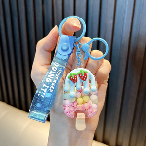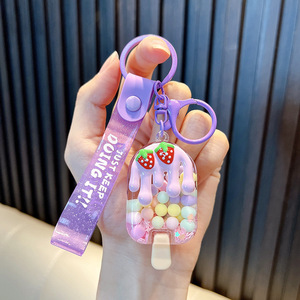 草莓雪糕钥匙扣入油糖豆流沙瓶包包挂件汽车钥匙链娃娃机礼品批发