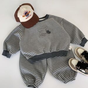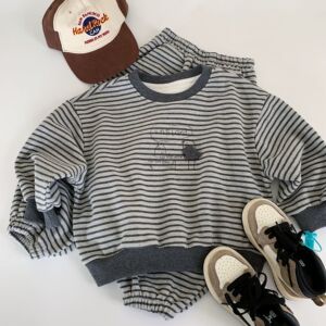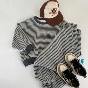 麦宝男童套装2025春秋新款韩版儿童条纹运动两件套宝宝洋气秋装潮