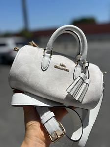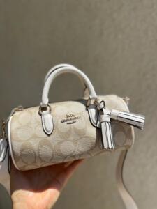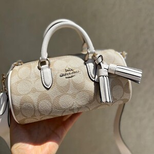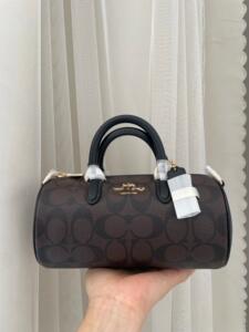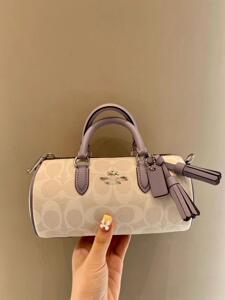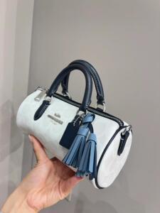蔻家新款Lacey20手提斜挎包复古老花波士顿涂层拼皮圆筒包笔筒包