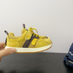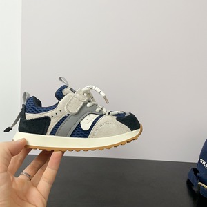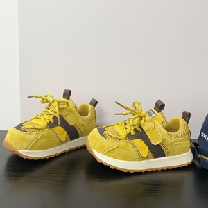 前系带装饰网面透气款儿童软底时尚阿甘跑步鞋2025年秋款运动鞋批