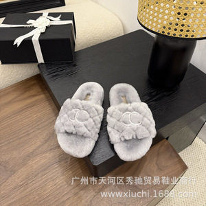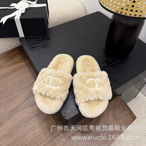 2025小香家新品羊羔毛一字拖鞋双层厚底凉拖鞋女士高端平底毛拖鞋