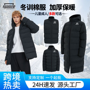 跨境户外冬训运动大衣男长款过膝训练棉服男体育学生保暖外套棉服