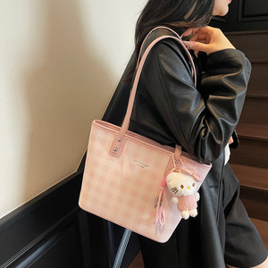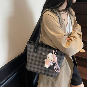 夏季时尚格纹腋下包包女2025百搭简约可爱单肩包大容量通勤托特包