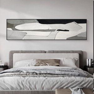 石来运转卧室装饰画现代抽象主卧床头挂画横版简约高级感客厅壁画