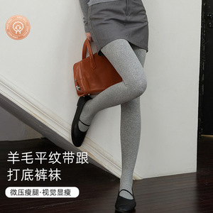 爆款 240针精纺羊毛平纹带跟打底袜女40支羊毛柔软舒适百搭连裤袜