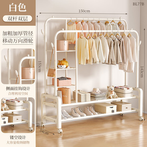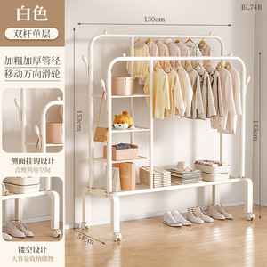 BL22B-铁艺衣帽架双层双杆衣帽钩150白+轮