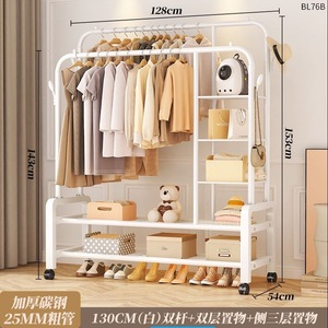 BL76B-25圆衣帽架双杆双层侧三层置物网4钩130白+轮