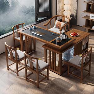 实木旋转茶桌旋转式阳台小户型家用移动茶桌椅组合泡茶功夫茶几