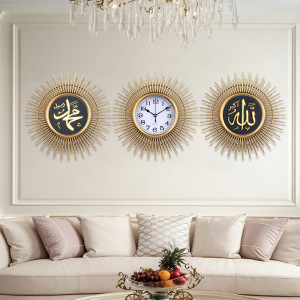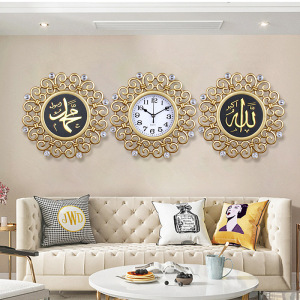 东南亚轻奢家用时钟套组创意墙面装饰挂壁钟清晰边框镂空石英钟