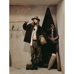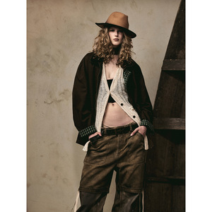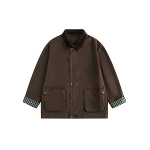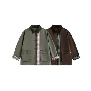 AYWTER美式复古学院风工装夹克男女情侣款宽松拼接格子外套W0490