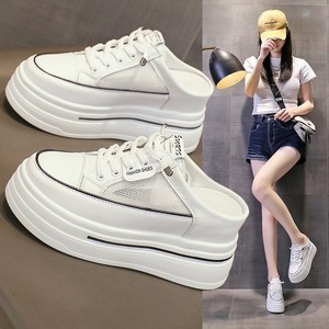 爆款厚底系带增高小白鞋女2025夏季新款百搭舒适休闲半拖鞋女外穿