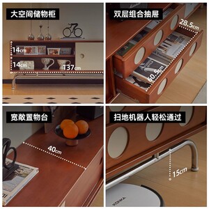 北欧实木电视柜家用小户型不锈钢靠墙置物柜客厅中古风收纳视听柜