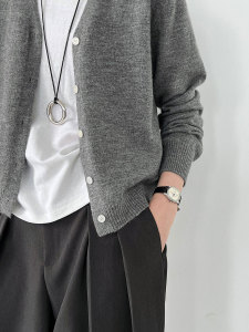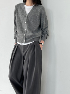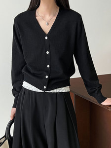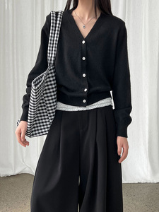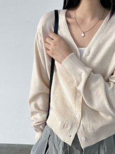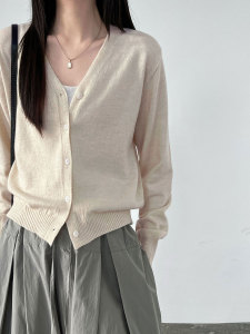 鹿西 韩系羊毛V领针织开衫女2025秋季新款简约收腰毛衣外套ss747