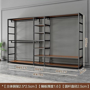 衣帽架钢结构衣柜家用卧室加厚双层加粗衣帽架两层金属简约现代