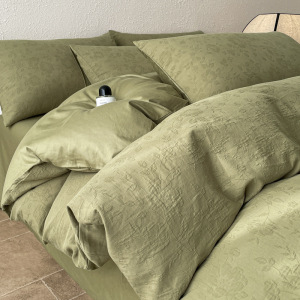 秋思橄榄绿【100%全棉三层纱色织提花工艺】
