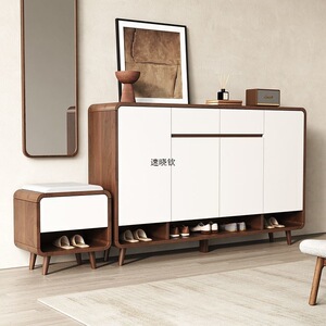2025新款新中式实木鞋柜家用门口大容量收纳柜一体靠墙楼道玄关柜