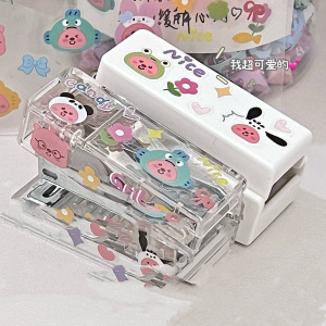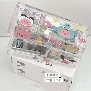 小海狸DIY透明订书机ins风高颜值白色小型迷你学生专用便携订书机
