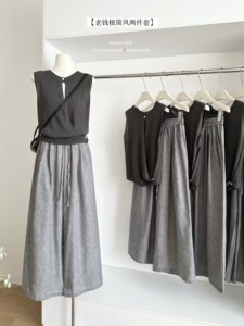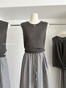 韩系老钱极简风露背针织衫+松弛感穿搭休闲纯色长裤套装女夏季