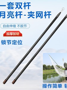 老式户外夹网伸缩杆双杆月亮网杆传统捕鱼网伸缩杆月亮网渔网