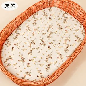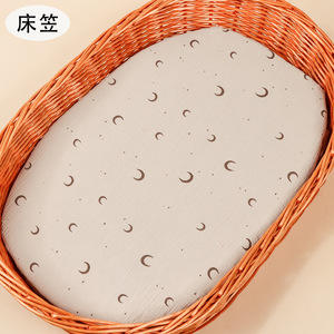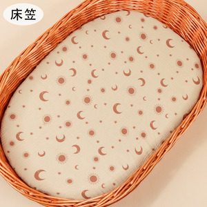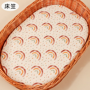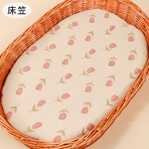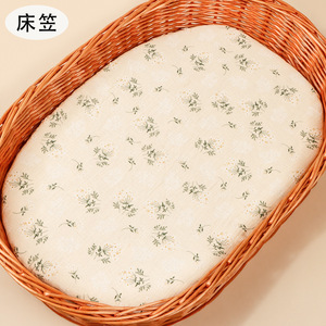 婴儿摇篮床笠双层绉布棉纱布纯棉布料摇篮床垫套子可拆卸换洗外罩