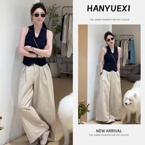 套装女2025新款甜辣修身设计感无袖针织上衣高腰阔腿休闲裤套装潮