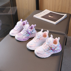 2025春秋新款女童运动鞋1-3-6岁5旋转纽扣卡通库洛米带灯宝宝鞋子