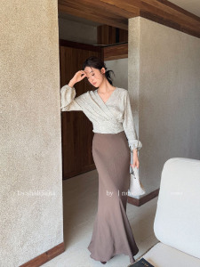 LS 法式优雅复古印花收腰小衫 广州十三行2025早秋新品女装61096#