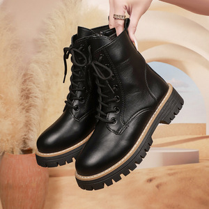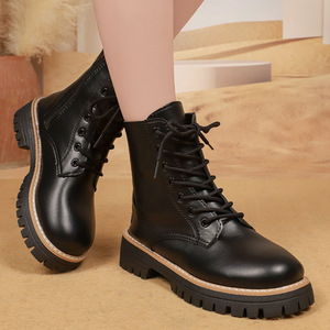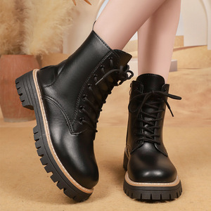 2025秋冬季新款黑色马丁靴女加绒英伦风粗跟短靴百搭中筒棉靴子女