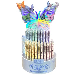 集物社按动中性笔黑色ST双珠笔头香水味香氛护套中性笔GP9255架装