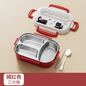 红色三格+餐具