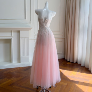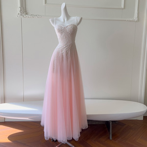 甜美风吊带抹胸礼服裙轻奢仙气敬酒服网纱裙修身收腰连衣裙69343