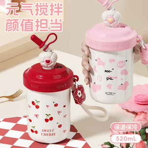 2025款富全米朵316不锈钢咖啡杯 可爱女高颜值学生杯子带吸管水杯