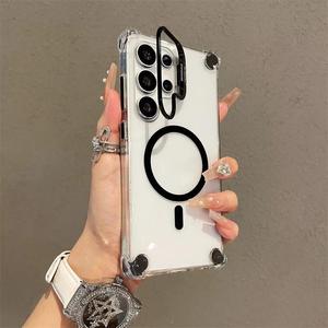 适用三星S25Ultra手机壳透明磁吸S24Plus四角防摔金属镜头支架S23
