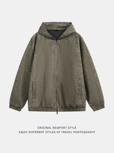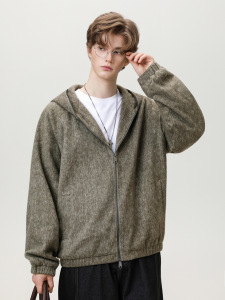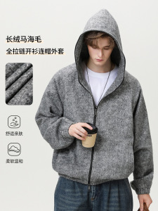 质感马海毛开衫连帽外套男秋冬款廓形宽松美式夹克慵懒高级感卫衣