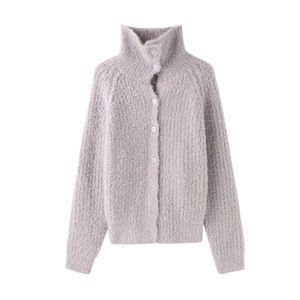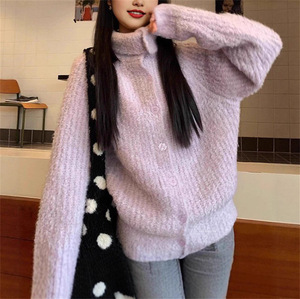 软糯复古紫色高领毛衣外套女秋冬新款慵懒风宽松气质针织开衫上衣