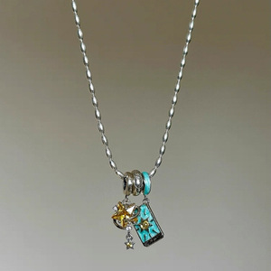 工厂直销塔罗星星隐士项链夏季小清新蓝色星星项链复古小方牌吊坠