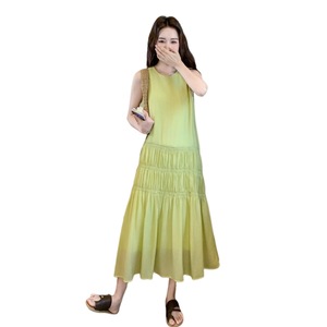 法式海边度假绿色背心吊带连衣裙子女夏季2025新款小个子气质长裙