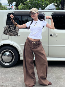 2025秋季复古美拉德牛仔裤个性街头时尚宽松阔腿拖地裤休闲长裤女