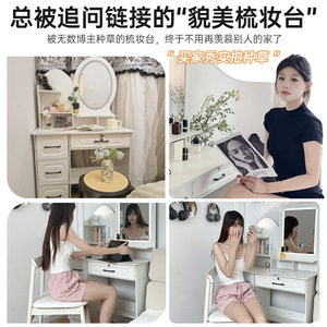 奶油风梳妆台卧室简约现代主卧2025新款小型化妆桌镜收纳妆柜一体