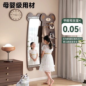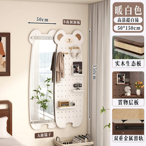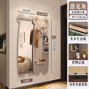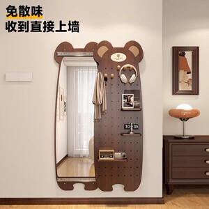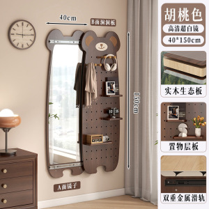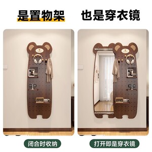小熊实木洞洞板穿衣镜隐藏式推拉全身镜子家用可关闭壁玄关试衣镜